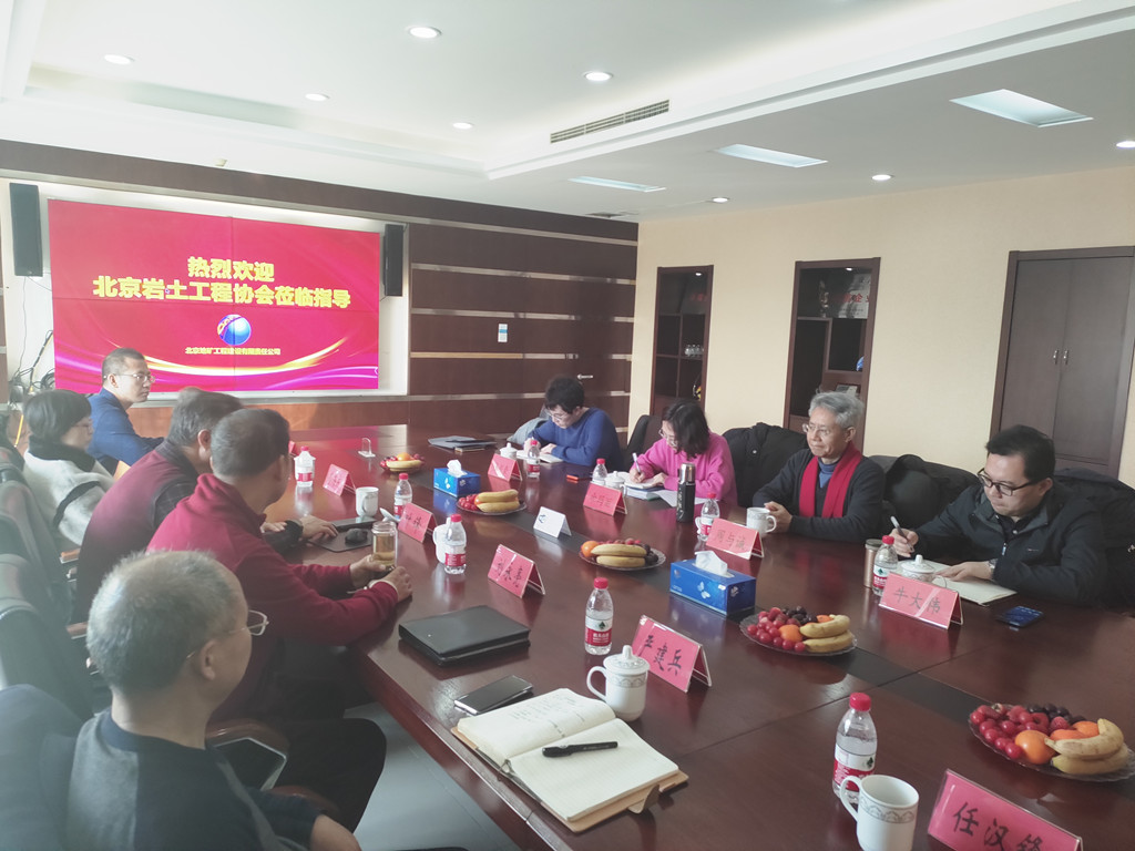 2023年2月24日上午,北京巖土工程協(xié)會常務(wù)副會長周與誠、秘書長牛大偉率領(lǐng)協(xié)會團隊來地礦公司進行現(xiàn)場調(diào)研與工作交流。公司董事長兼總經(jīng)理劉永亮、副總經(jīng)理嚴建兵、副總經(jīng)理任漢鋒、總經(jīng)濟師蔡海慶、總工程師葉鋒等領(lǐng)導(dǎo)班子成員陪同。