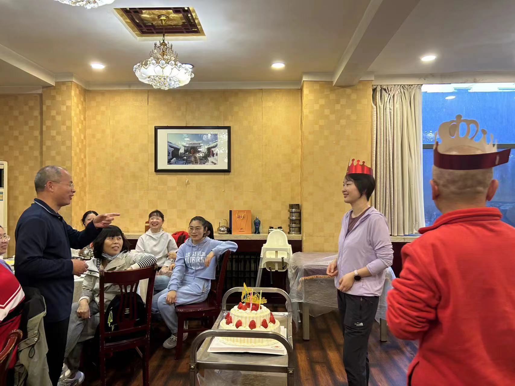 領導和同事們?yōu)樯盏膯T工慶祝生日