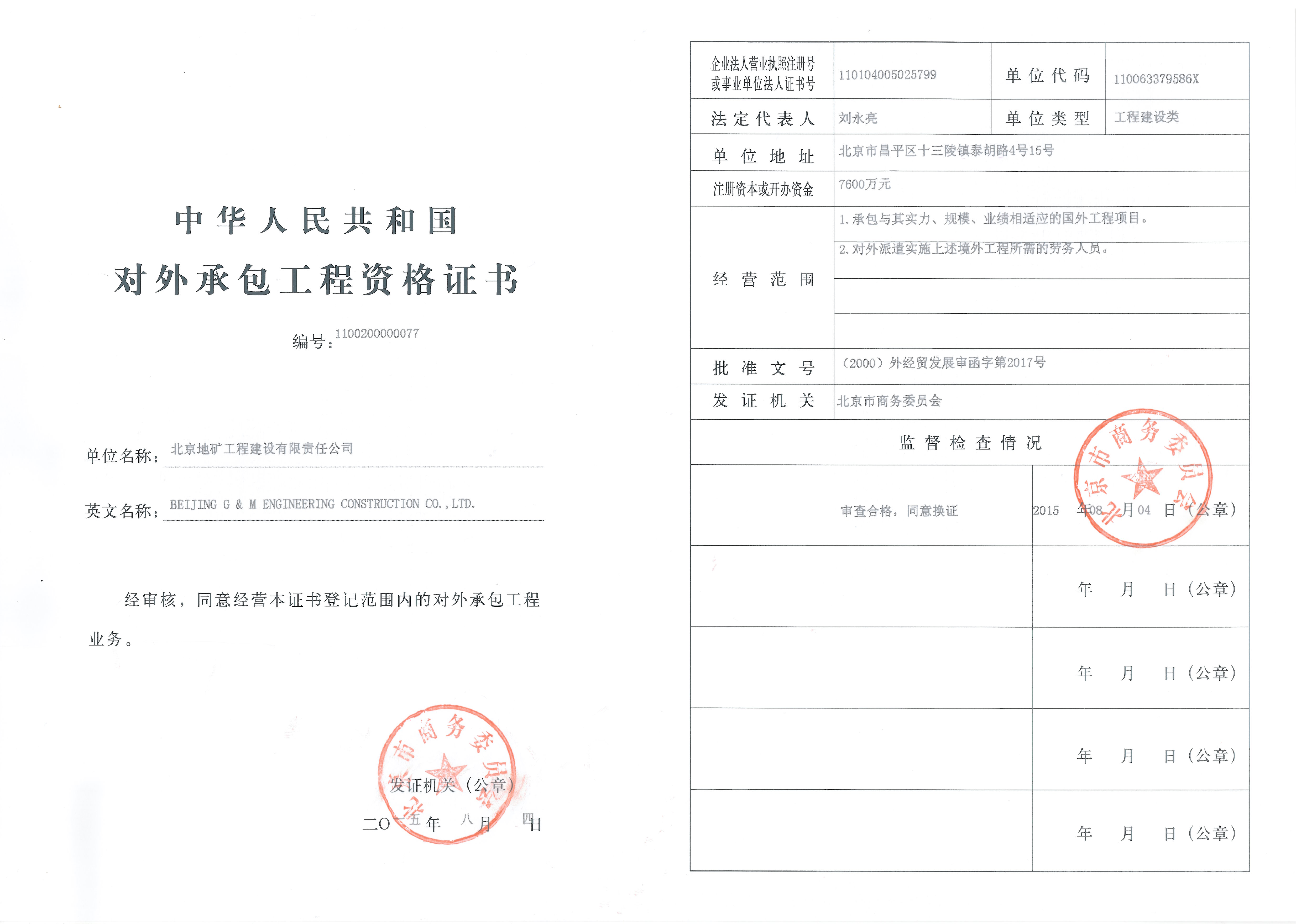 對(duì)外承包工程證書