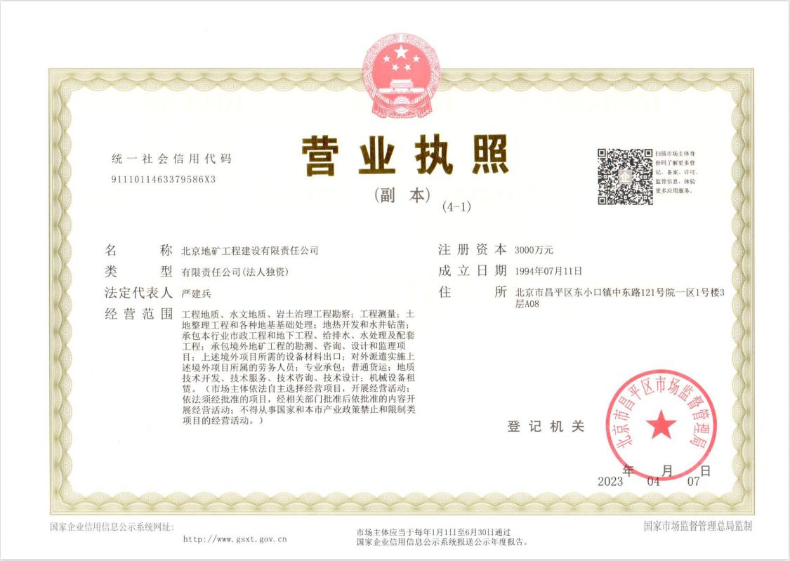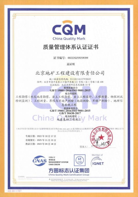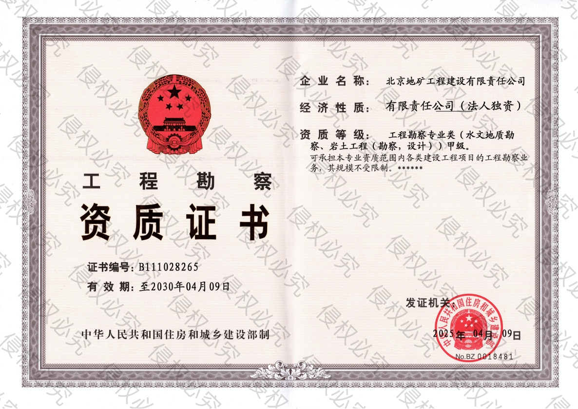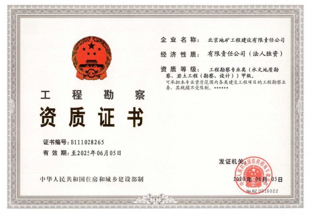工程勘察甲級(jí)資質(zhì)證書