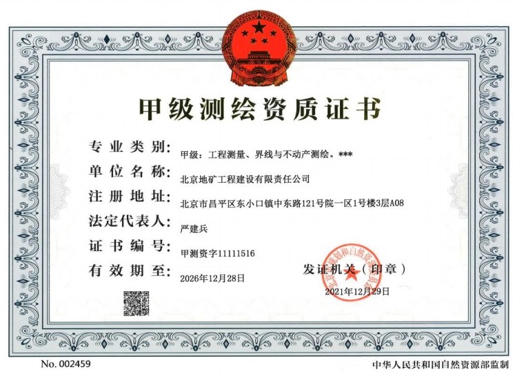 測(cè)繪甲級(jí)資質(zhì)證書