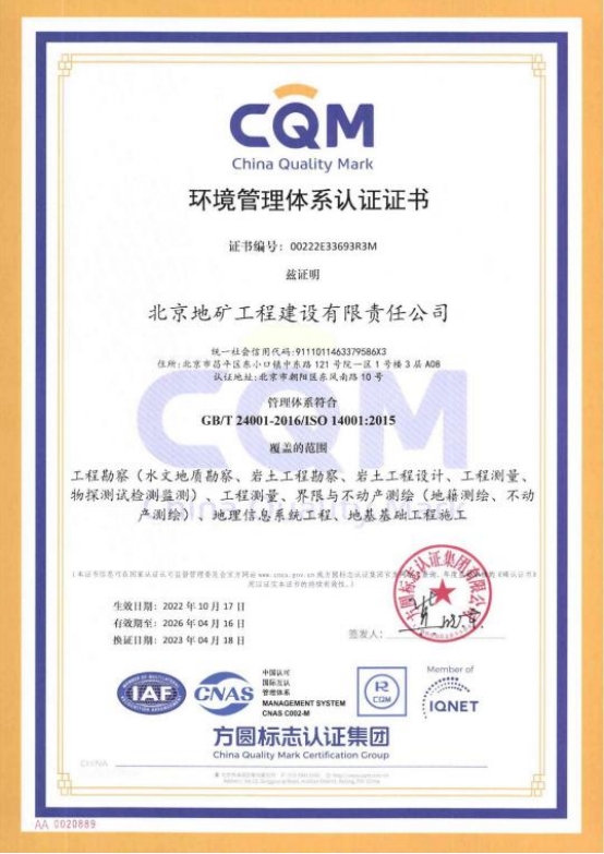 環(huán)境管理體系認(rèn)證證書