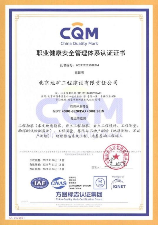 職業(yè)健康安全管理體系認(rèn)證證書