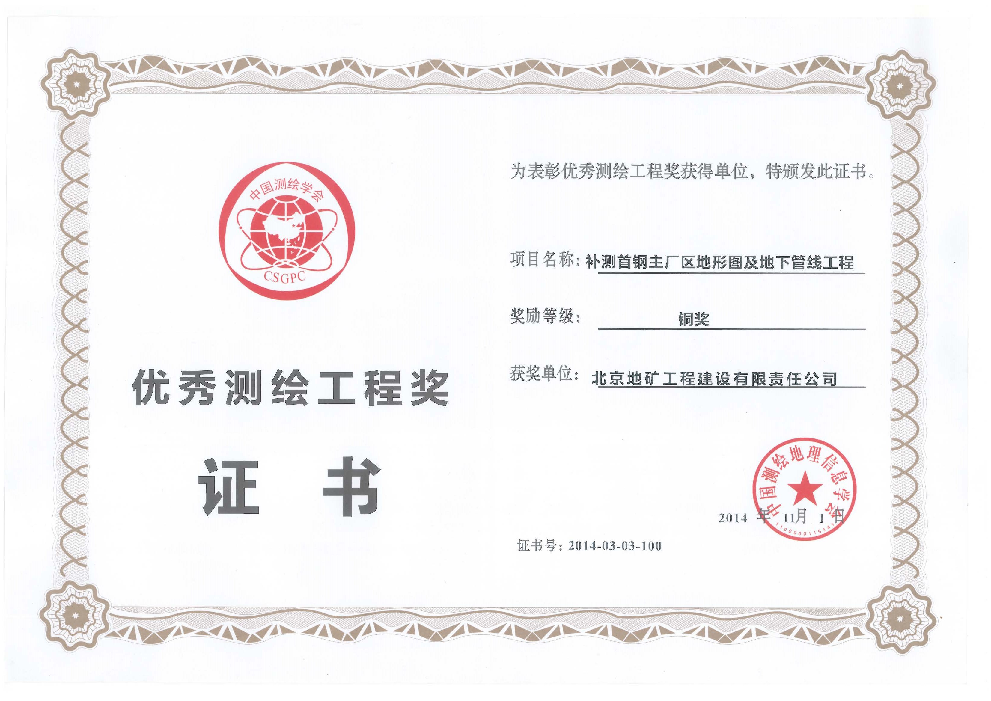 2014年優(yōu)秀測繪工程
