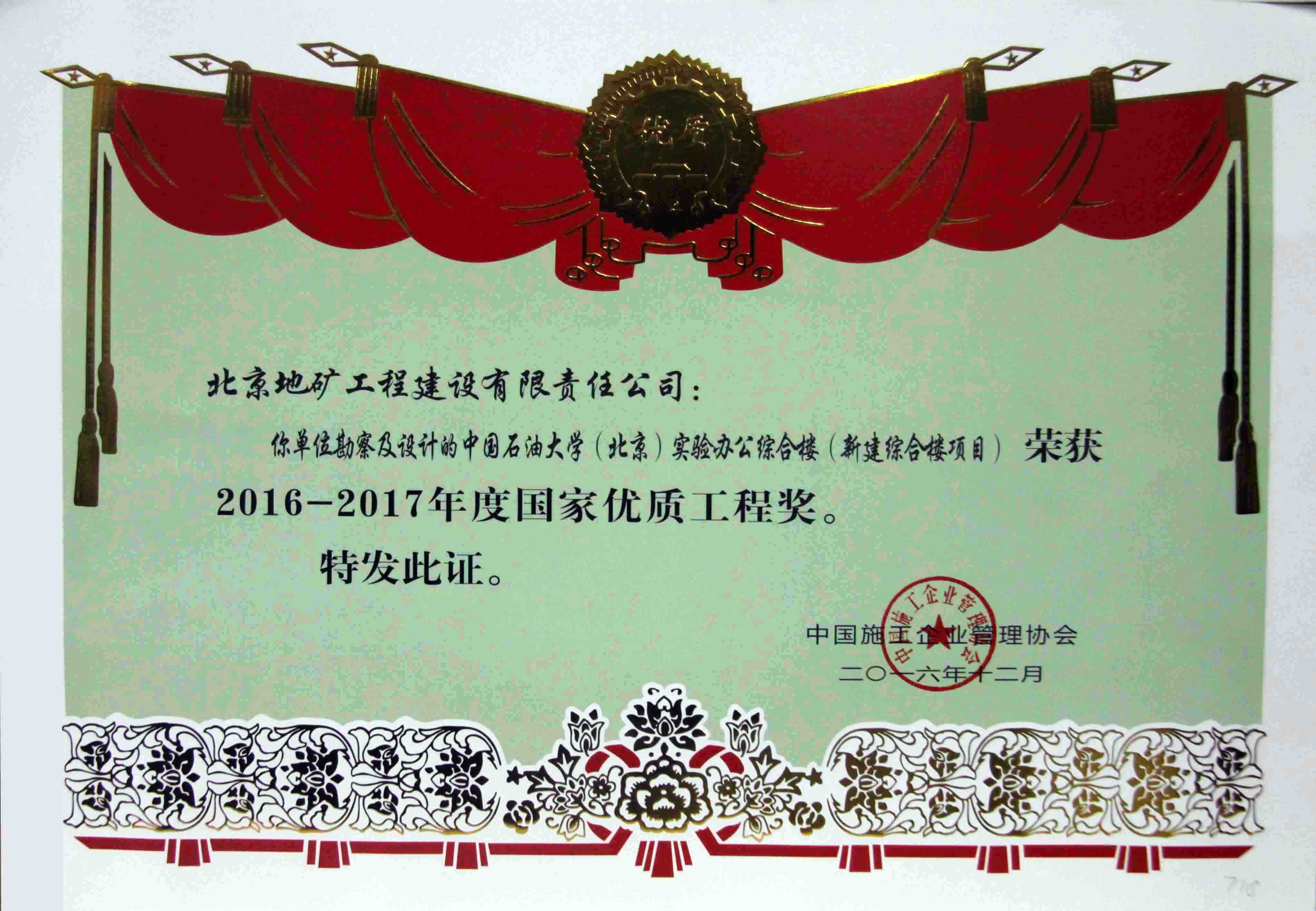2016-2017年國家優(yōu)質(zhì)工程獎