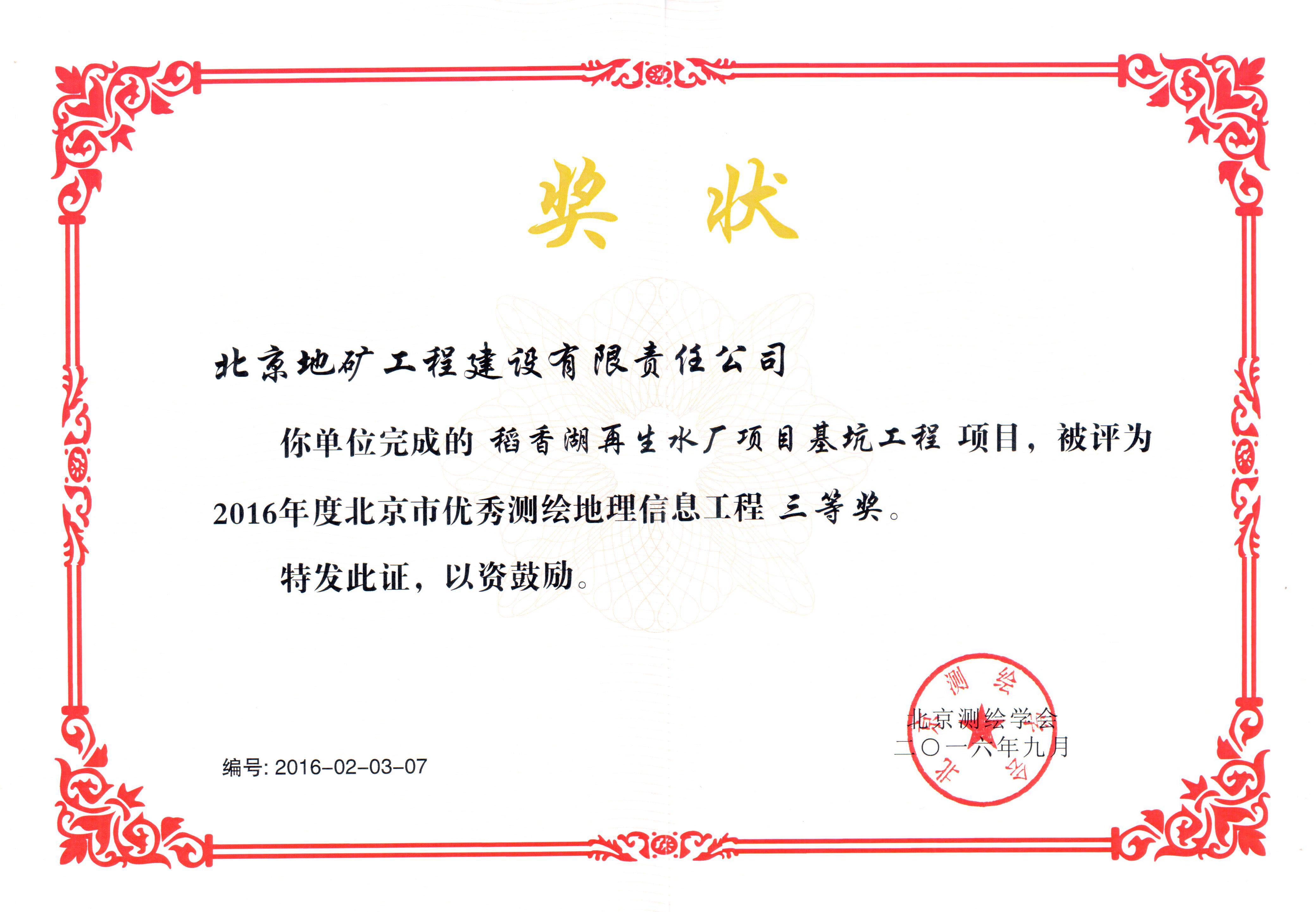 2016年北京測繪學(xué)會三等獎